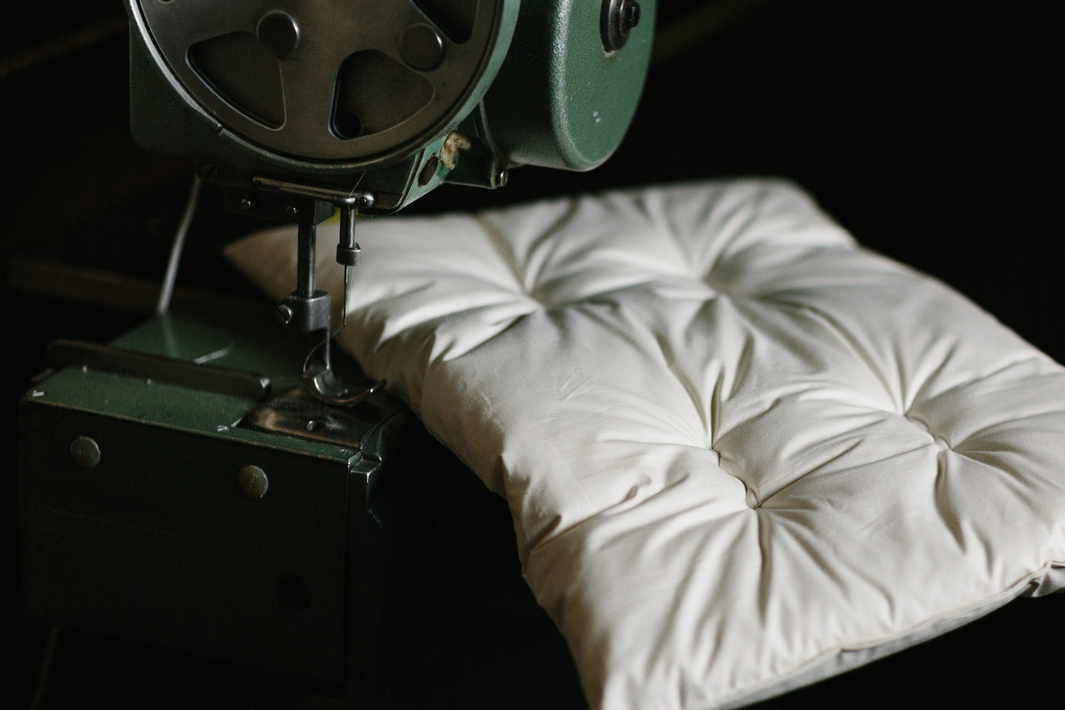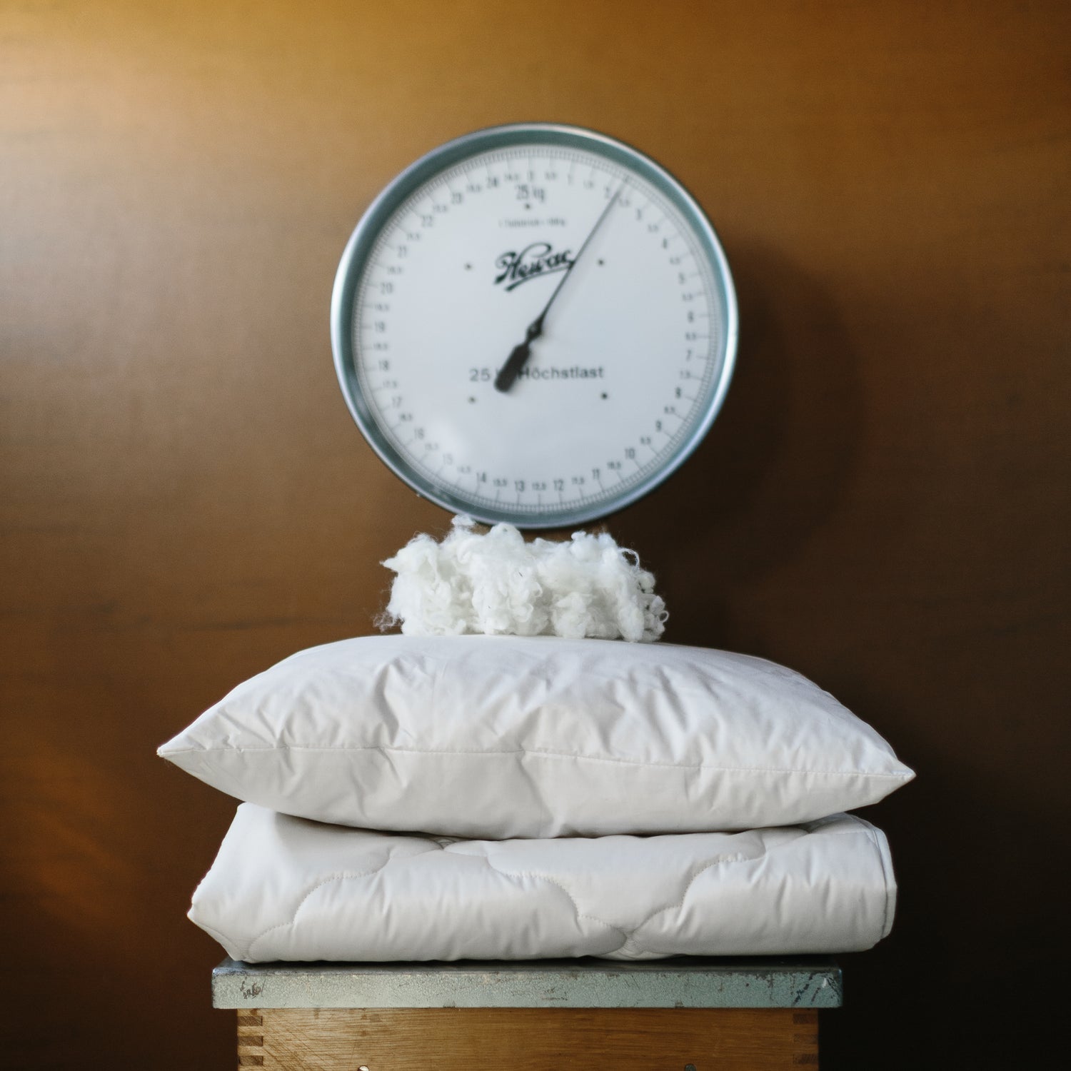 Tässä tyynyssä käyttämämme erityisen karhea, kihara ja pitkä villakuitu on pesty, karstattu ja kammattu puhtaaksi ja samansuuntaiseksi, lomittain toisiaan sitovaksi tasaiseksi vanuksi. Läpiompeleet pitävät tyynyn matalana koko alueelta.