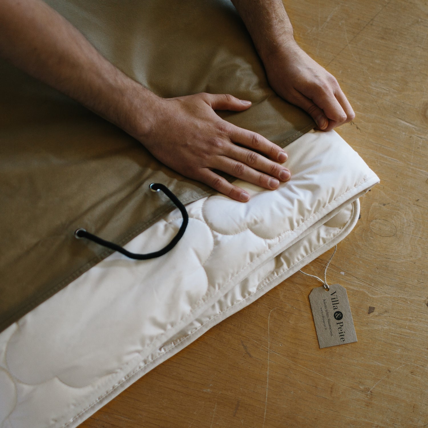Ekstra ohut ja viileä peitto. Tämä uutuus on entistä ohuempi ja kevyempi versio kesäpeitoksi. Olemme luoneet täytteen joka on sekoitus 50% luomupuuvillaa ja 50% lyocellia.